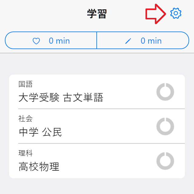 合格テストを生徒にアプリを起動してもらい、右上のオプションをタップ