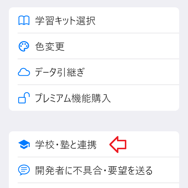 『学校・塾と連携』をタップ