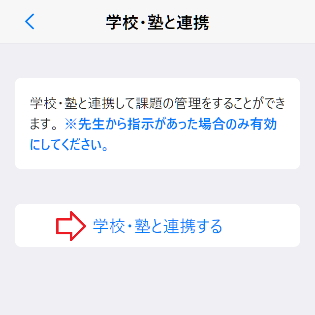 『学校・塾と連携する』をタップ。 確認ダイアログが表示されるのでOKをタップ